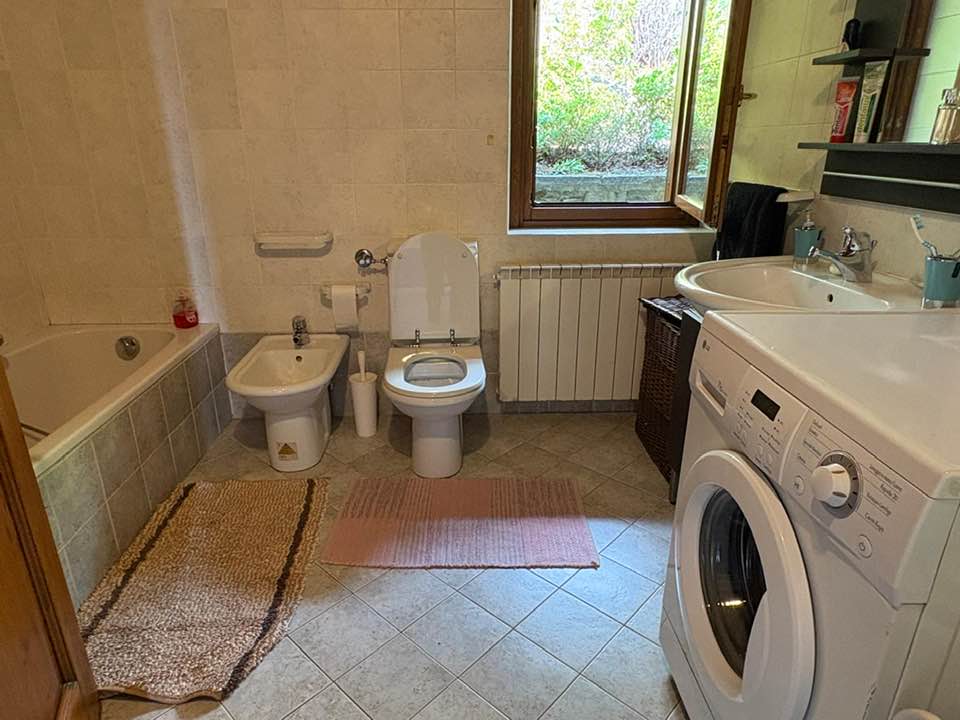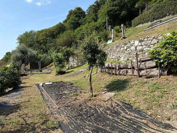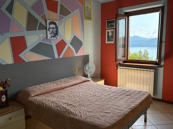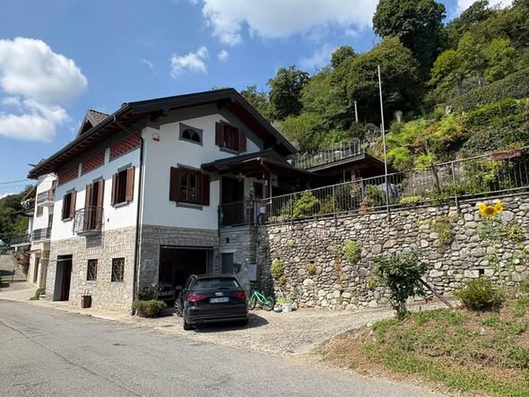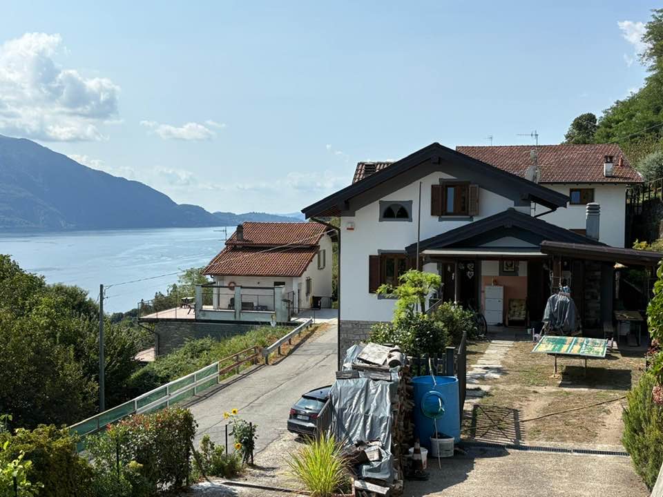 Casa indipendente disposta su più livelli con adiacente terreno e vista lago.
