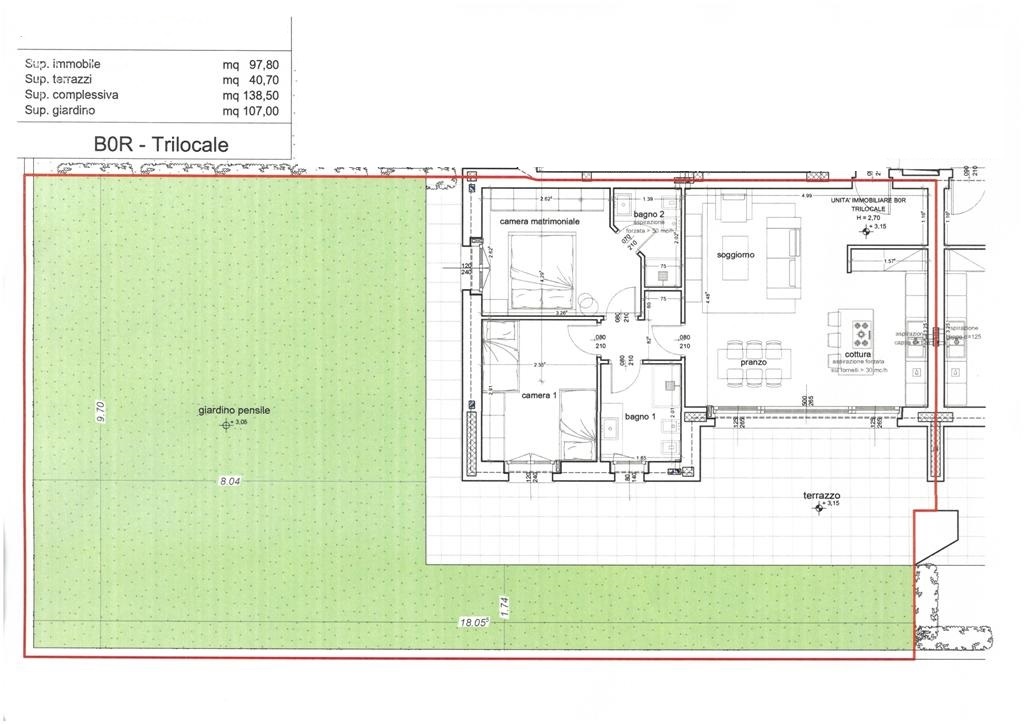 In Intra, in contesto di nuova costruzione, si vende splendido appartamento trilocale di mq. 97,80. Ampio terrazzo e giardino di 107 mq.